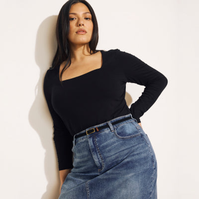 Liquid Jersey Two-Way Long Sleeve Cross Top - Black