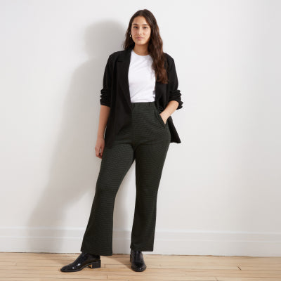 Pam Pintuck Wide Leg Ponte Pants - Herringbone Tweed