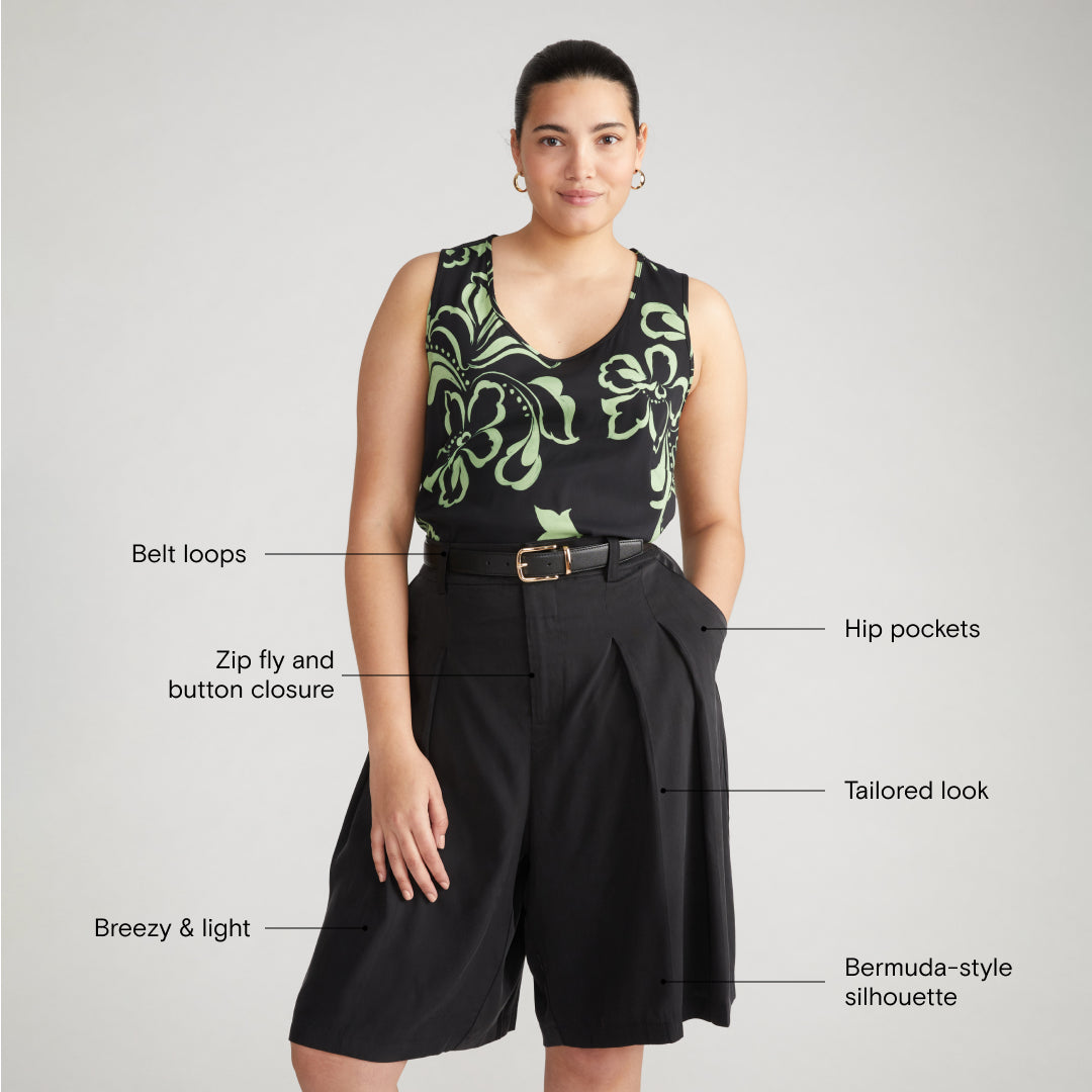 The IT shorts of summer. We took the classic Bermuda silhouette and gave it a tailored, elevated twist. Made from our new cooling stretch cupro, these babies feel like silk but are way easier to care for. As in, they’re machine washable!