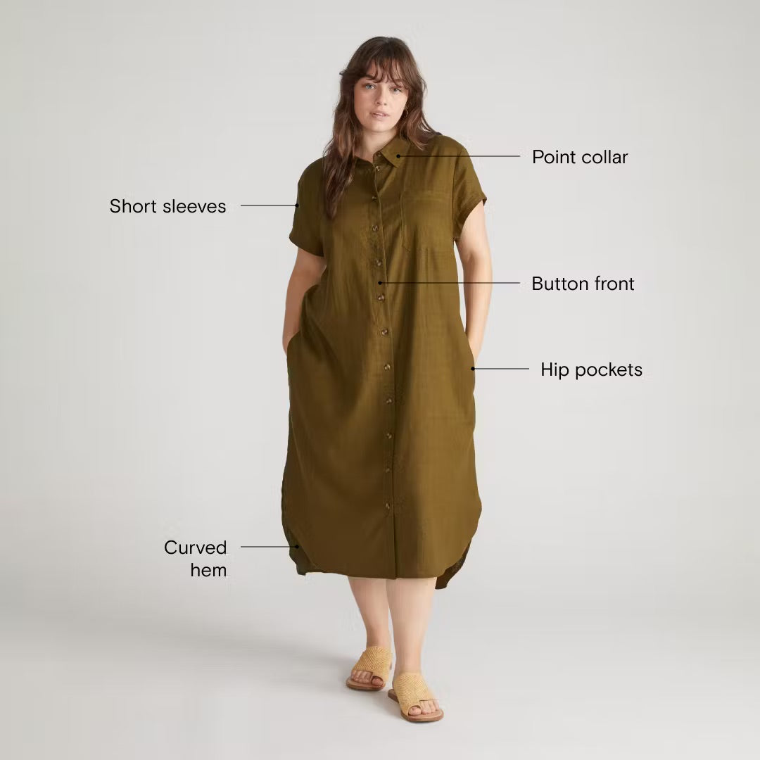 Learn MoreThis is the perfect piece for every summertime occasion. Feel cool all day long in our airiest shirtdress with an exaggerated hi-low hem and subtle side-slit detailing. You can adjust the front buttons for a front slit, too, if you wish. Plus, it has convenient pockets. It's made from our signature stretch linen that feels like it's floating and is supremely soft against the skin. The innovative fabric has linen's beloved textural look and feel with more freedom of movement. As easy and flexible as your loose summer plans.
