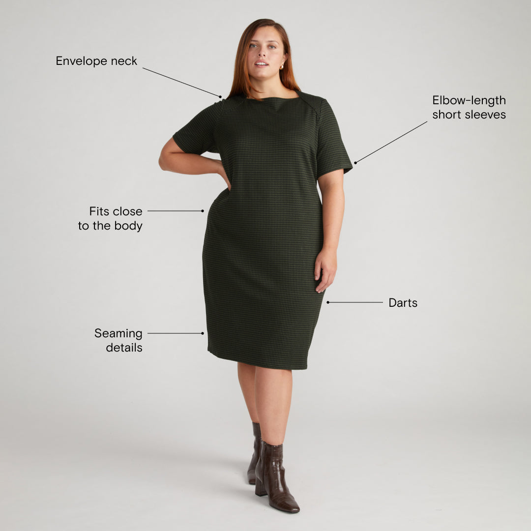 Learn MoreGo after what you want. As in this dress. Your wardrobe will get an instant promotion, on the path to perfection. Designed to fit close-to-the body, it will move with you because it’s cut from our soft and stretchy Ponte. Thoughtful darts and seaming details provide smoothing and definition, but you will never feel compressed or restricted. The envelope neck is unique and frames the face beautifully.
