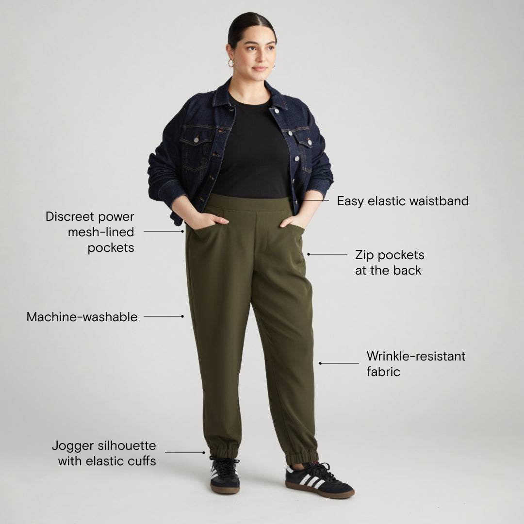 Learn MoreIntroducing: Your travel jogger. These extremely comfortable pants are easy to pull on, won’t crease or wrinkle, and will move with you from point a to point b. We love the elastic waist and cutaway pockets that sit flat and look sleek.