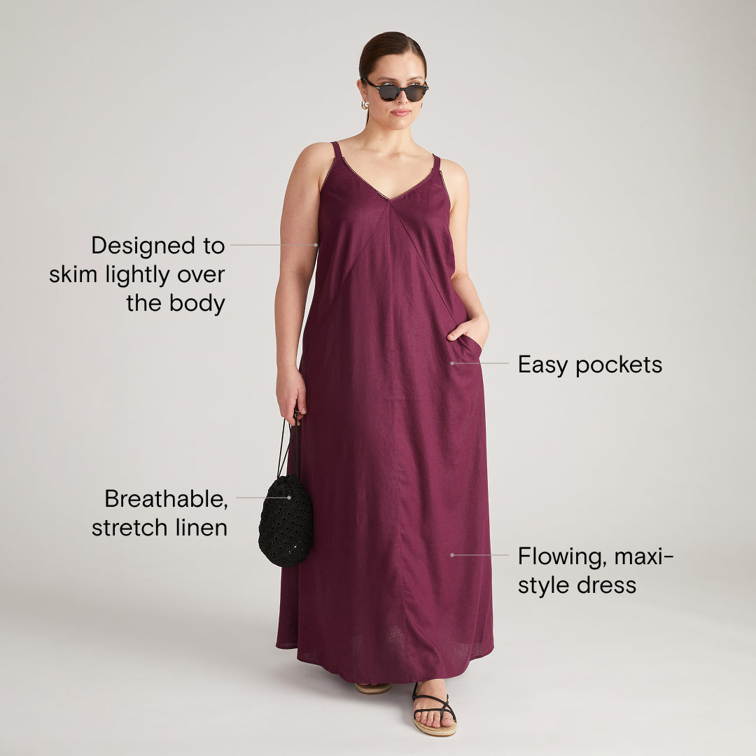 Soar through summer in our flowing, high-flying Kite Dress. This maxi-style dress is made from our breathable stretch linen and designed to skim lightly over your body with a light-as-a-feather fit. The simple lines that define this style bring minimalist design and soft romance together for the season.