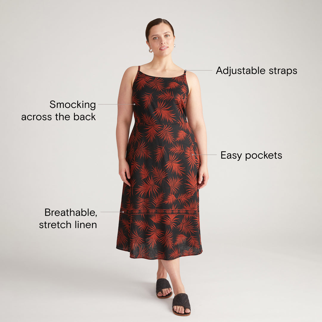 Strikingly sharp but undeniably comfortable, our Kuki Dress is made from our signature breathable linen fabric. Adjustable straps and smocking across the back provide extra stretch, and every detail is designed to create the perfect fit. This dress is your best friend—the one that always makes you look good. Call her up when that summer soirée invite comes in—she’s your perfect plus one.