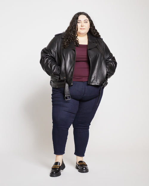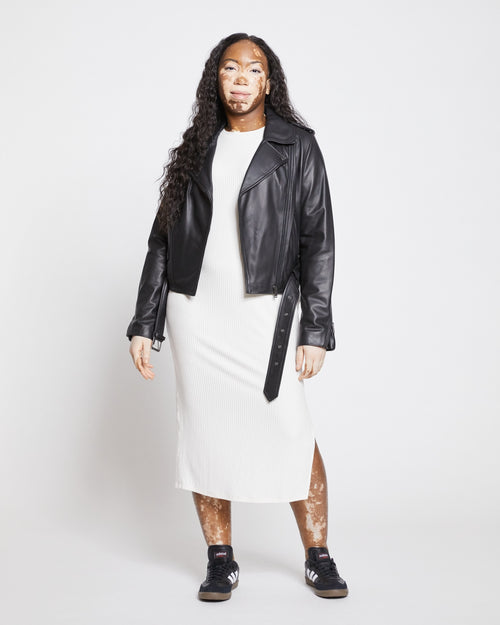 Learn MoreThe completely cool, stunningly soft, premium leather jacket is finally here. Made from 100% butter-soft genuine leather, this iconic piece is tough and feminine with classic finishes, making this moto jacket a must-have. With metal hardware and snaps and a boxy fit that says cool, this is the perfect layer over, well, everything. Not too heavy. Not too light. It's just right.