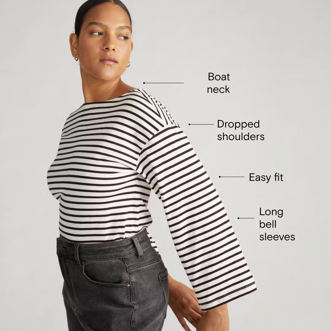 Learn MoreThis is our take on the classic Breton stripe top. It’s timeless and essential but features fashionable bell sleeves. Wear it everywhere from summer parties to everyday activities. It’s made from a yarn-dyed, compact-knit jersey that was developed by US. Soft yet substantial, it feels easy and luxurious.