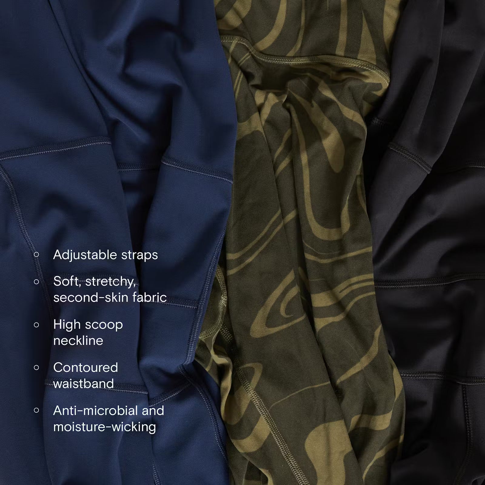 This bodysuit boasts a contoured waistband, adjustable straps, and higher neckline for secure coverage. Made from a sweat-wicking, antimicrobial fabric developed by US, this piece has a soft handfeel that creates a next-to-naked sensation as you move. No built-in bra allows you to choose any one you like. It's perfect for yoga, pilates, or any other activity.