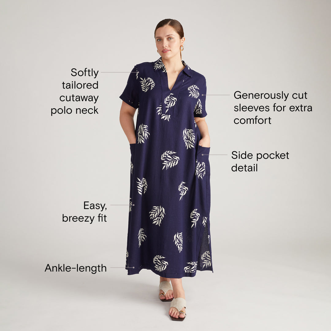 Learn MoreOur chic take on the polo dress, the Padma is sophisticated with an easy fit—an ankle-length style that feels light and breezy on warm summer days. A perfectly put-together look in a single piece, it features a softly tailored cutaway polo neck, side pocket details, and generously cut sleeves for extra comfort. Simple, elegant, and versatile enough to dress up or down.