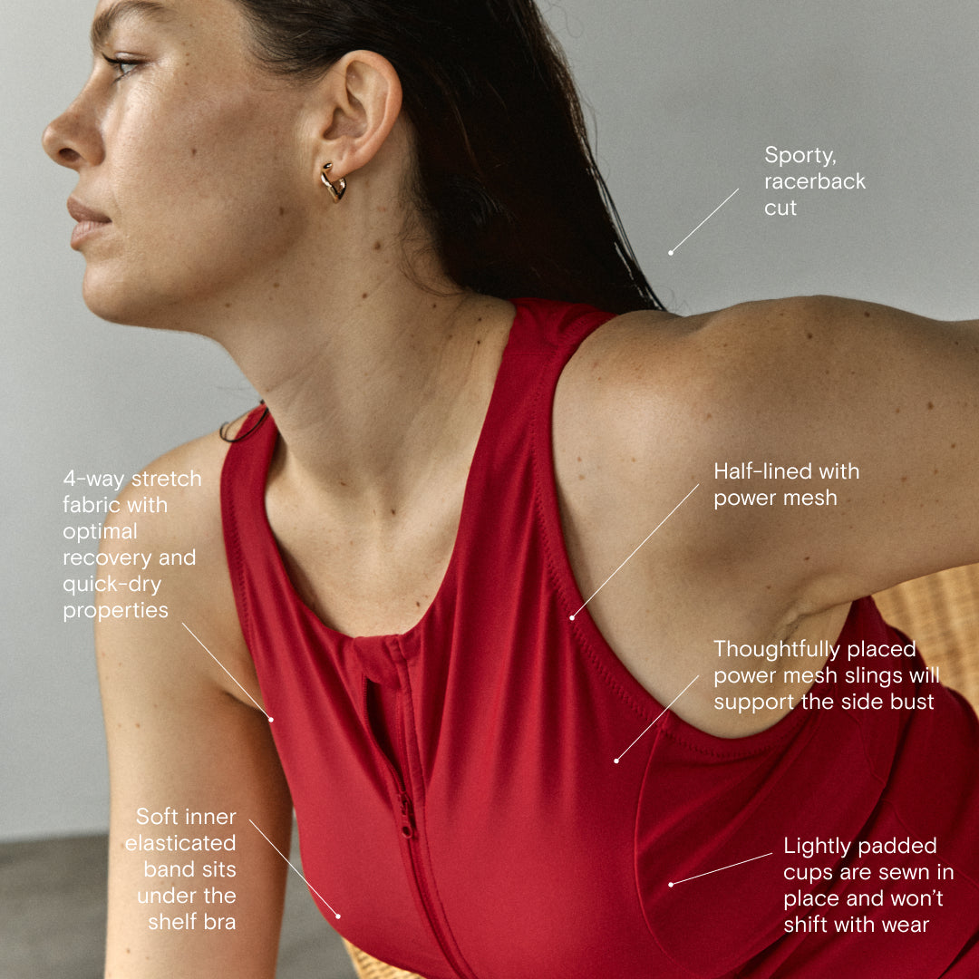 Look better than a Bond girl in this half-zip tankini. The sleek and sporty style feels very secure. Offering the support you want without any of the struggle, it’s made from a soft and flexible UPF 50 fabric. We heard your feedback on last year’s tankini and reduced the lining for a lighter feel.