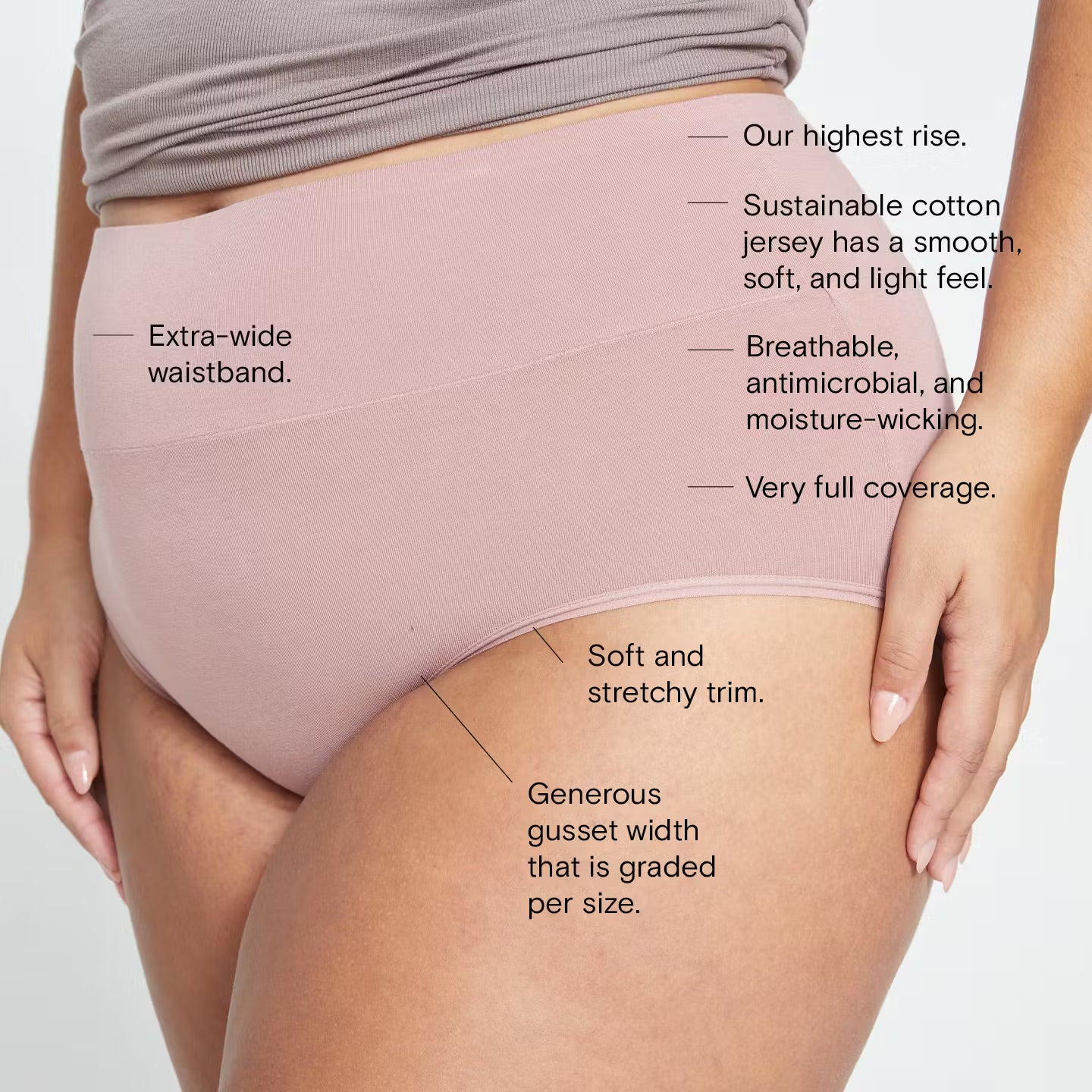 We made the unsung wardrobe heroes you've been missing. The best basics—underwear, perfected. These new high-rise briefs boast the most coverage in our underwear collection. They will sit at your natural waist with an extra wide waistband, and they're made from sustainable cotton jersey blended with modal for a smooth, light-as-air feel and second-skin fit (like they're barely there). You shouldn't have to think about underwear—leave that to US. We've thoughtfully engineered each pair to feel so comfortable you'll forget you've got anything on at all.